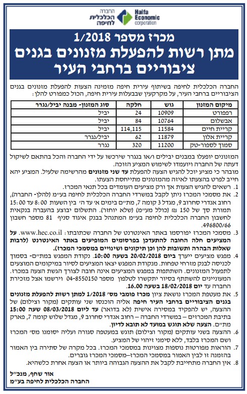 להגשת הצעות לזכות שימוש בשטחיםבמרכז הספורט העירוני גלי חיפה
